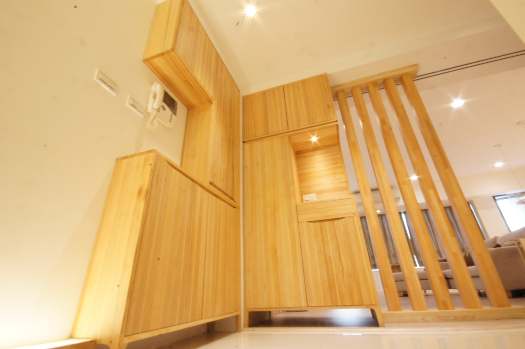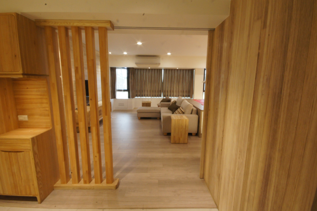 另外我們也堅持用日本的矽酸鈣板,因為它不含石棉,可避免發霉、石棉肺症Asbestosis 及肋膜癌。 除此之外,天花板做平面的樣式,不做造型,以防止灰塵堆積在溝縫,塵蟎茲生,防止過敏原堆積在暗角處。我們窗戶沒有做百頁窗,也同樣是為了避免蝸藏䴤蟎。說到防止堆積灰塵,臥室裏櫃子大多數都是做滿頂到天花板,底部用踢腳板封起來,這樣做就不會積太多灰塵。