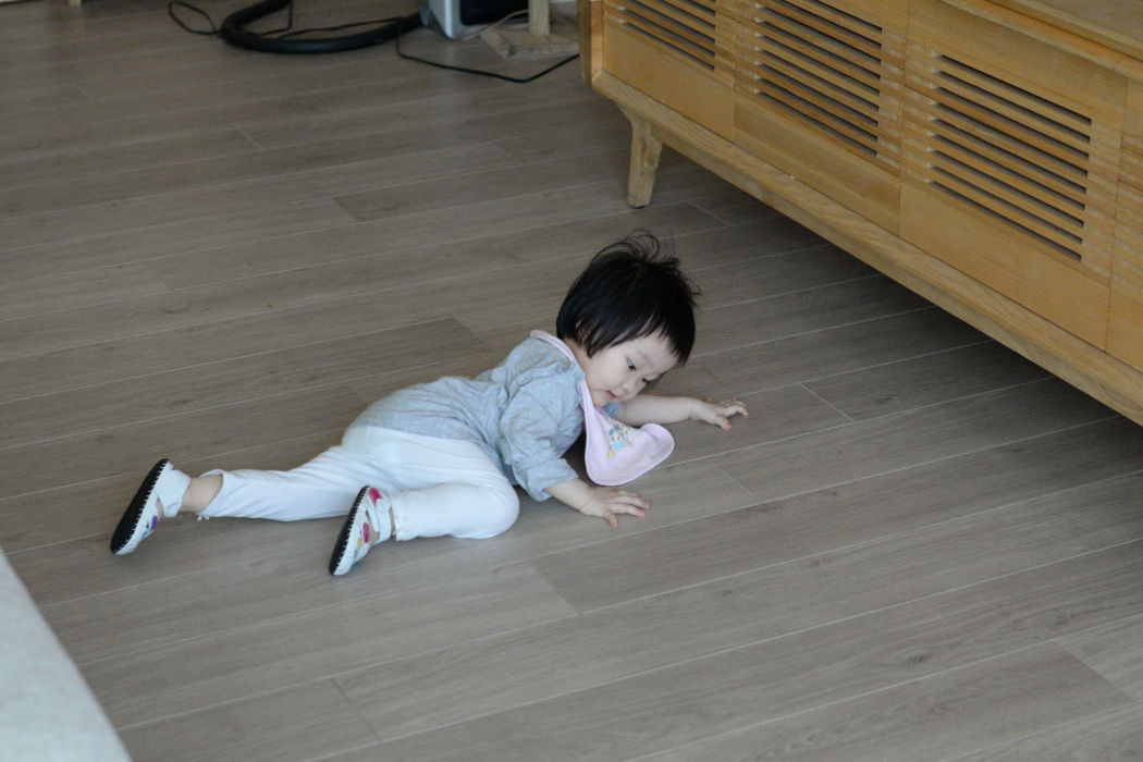 奶爸家中有兩個皮翻天的女兒,老大每天都給我來個地板湯瑪士迴旋體操動作,老二現在努力的趴在地上懶著不向前爬,真的幸好當初有裝低甲醛的超耐磨地板,可以安心的讓他們坐在地板上拿玩具敲敲打打,盡情的享用地板的原木口味,也不擔心吃到有毒物質⋯